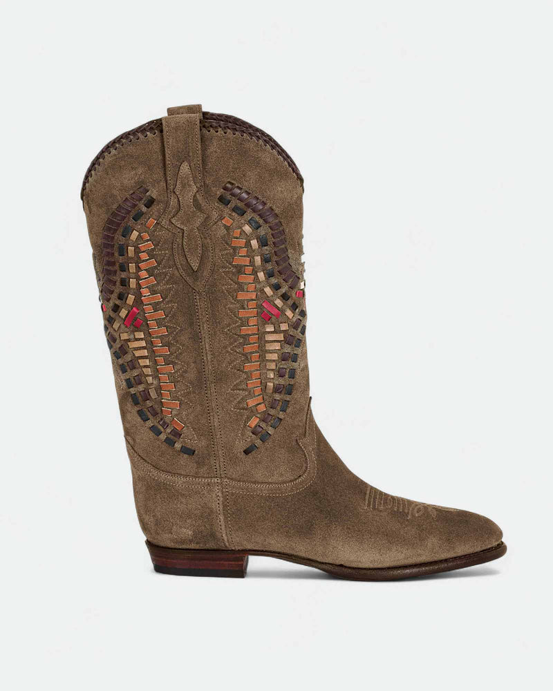 Un savoir-faire artisanal : cuir ou daim, des santiags marron faites à la main