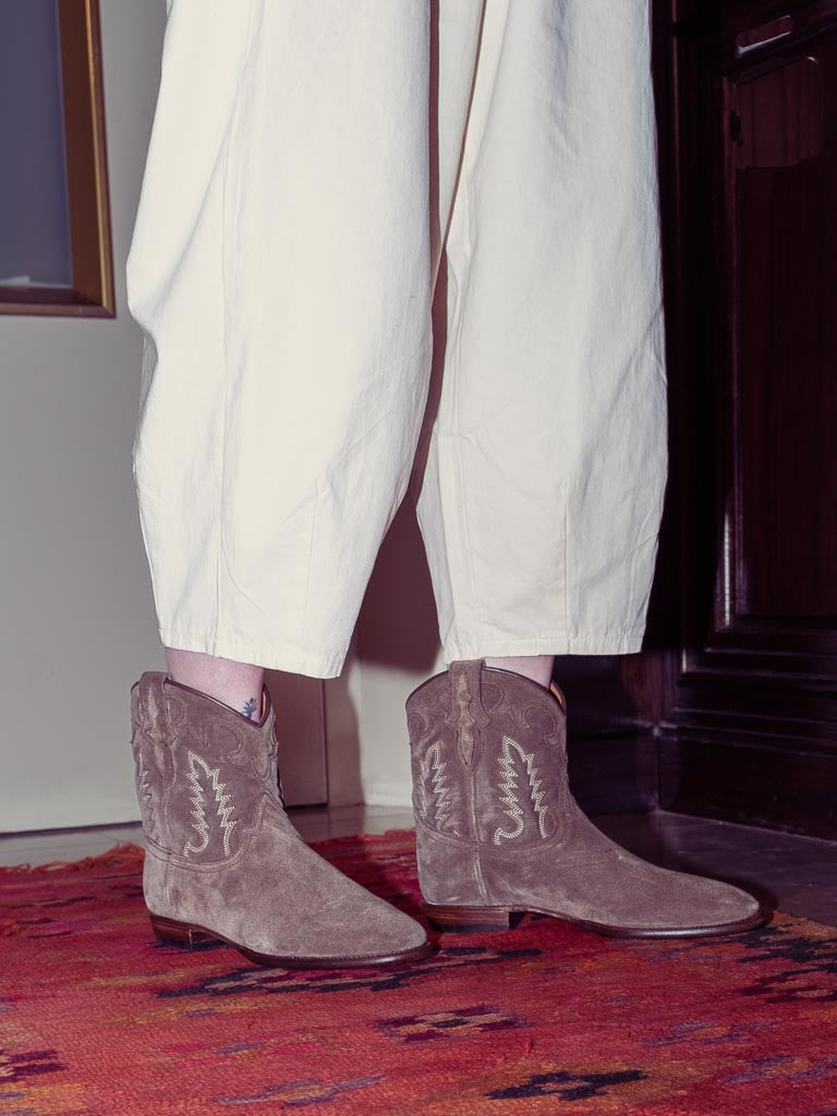 The Early Midnight Ankle Cowboy Boots in Moccha are inspired by the rich tones of freshly ground coffee. Their deep hue evokes the intensity of moments shared in the heart of the city, where every step invites exploration and mystery. More urban and refined, they capture the essence of effortless elegance, blending the warmth of memories with the promise of adventures to come.