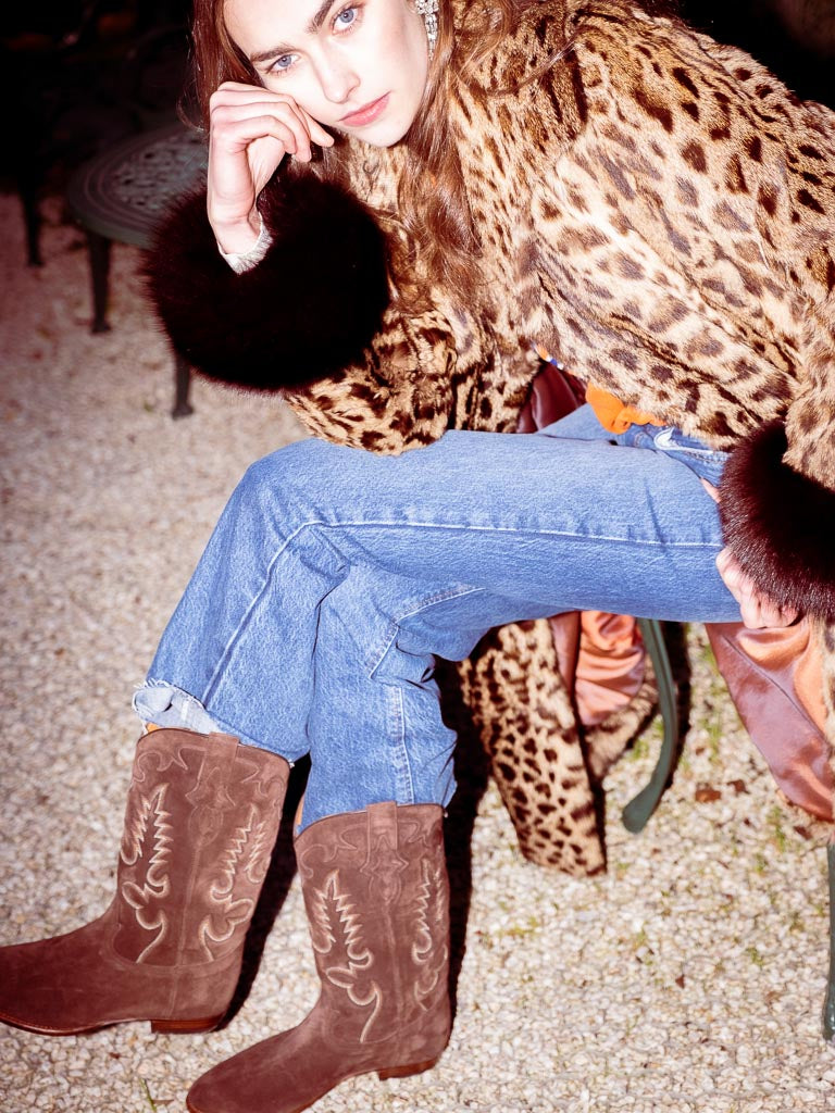 The Midnight Cowboy Boots in Brown color evoke the depth and richness of forest landscapes, offering timeless elegance and a grounding sense of comfort. Their earthy tone inspires stability and enduring style.