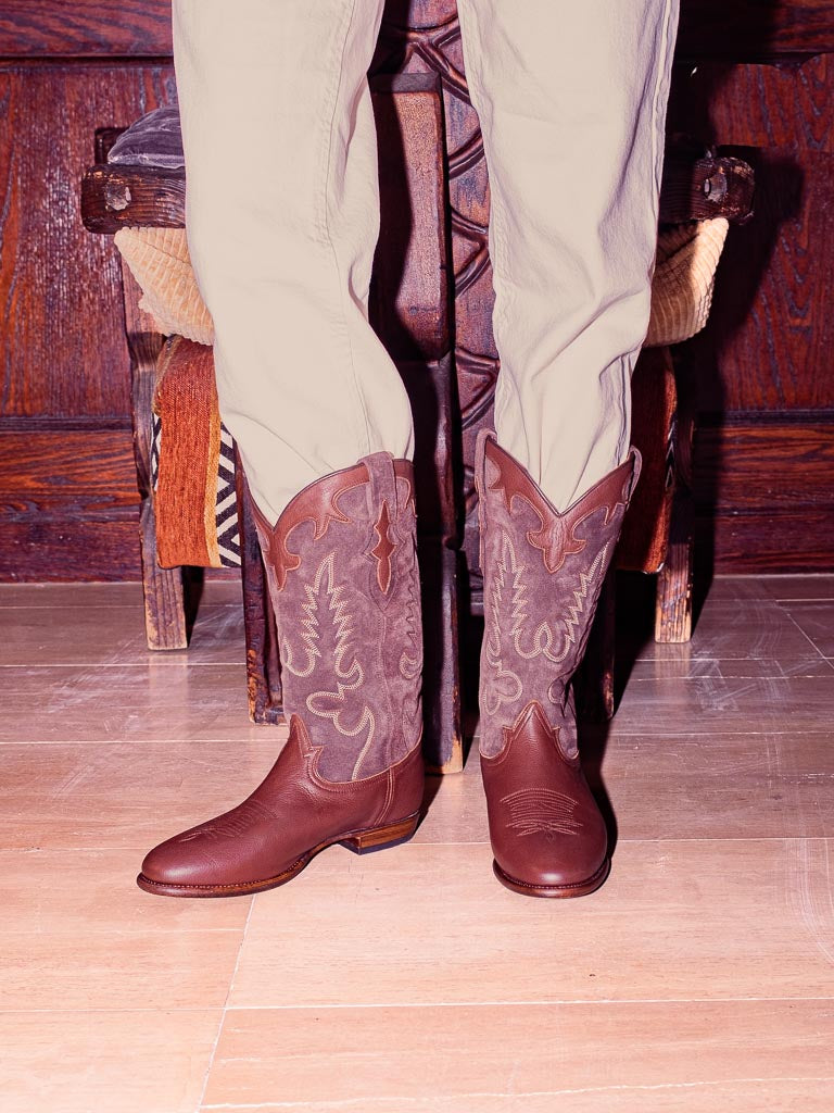 Midnight Blend Brown embodies the depth and warmth of an intense brown, evoking the wild and mysterious lands of the West. This model enhances the contrast between smooth leather and velvety suede, offering a play of textures that captures light to reveal the richness of its shades. These boots exude a wild and free spirit, ready to conquer every horizon.