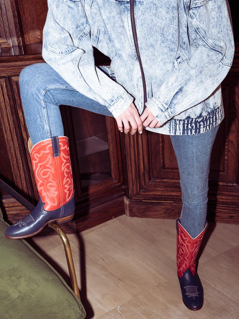 Created with the will to wander around, to lose oneself in the beauty of the moment. These boots are companions to adventures where deep comforting blue contrasts with intense daring red, made for those who seek the unexpected and embrace the journey.